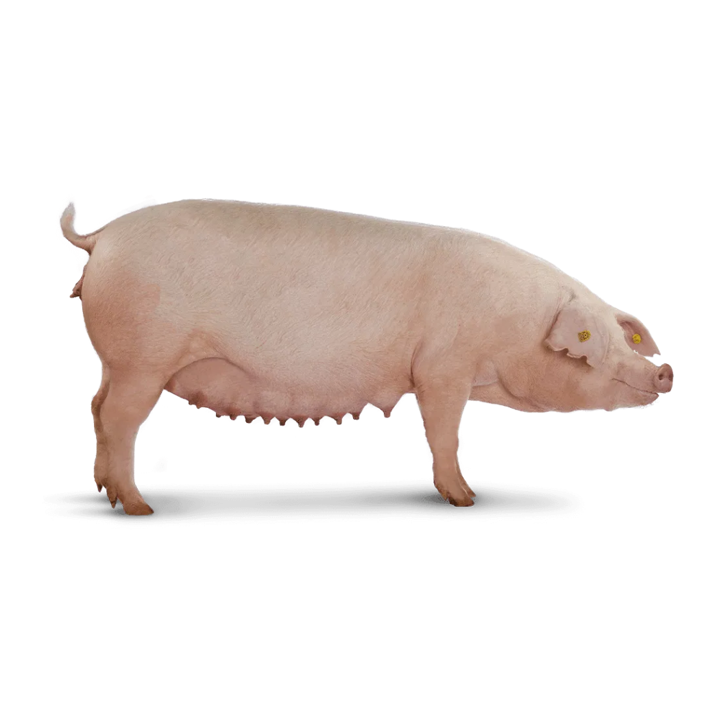 The Landrace is a top-tier maternal breed known for its reproductive efficiency and ability to produce uniform, high-quality litters. Its calm temperament and excellent milk production make it a favorite among breeders